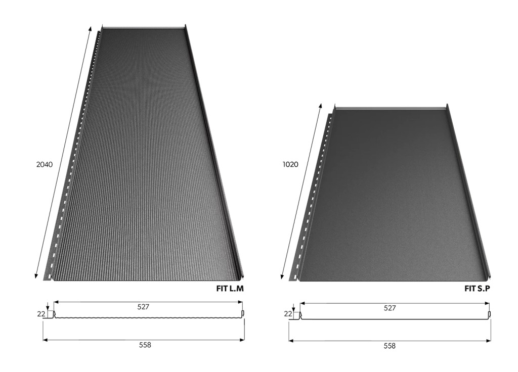 Lambda FIT "L" moduláris előkorcolt tetőlemez, UTK 31 matt (csokibarna) 0,5mm vastag Hosszúság: 2.040 mm
