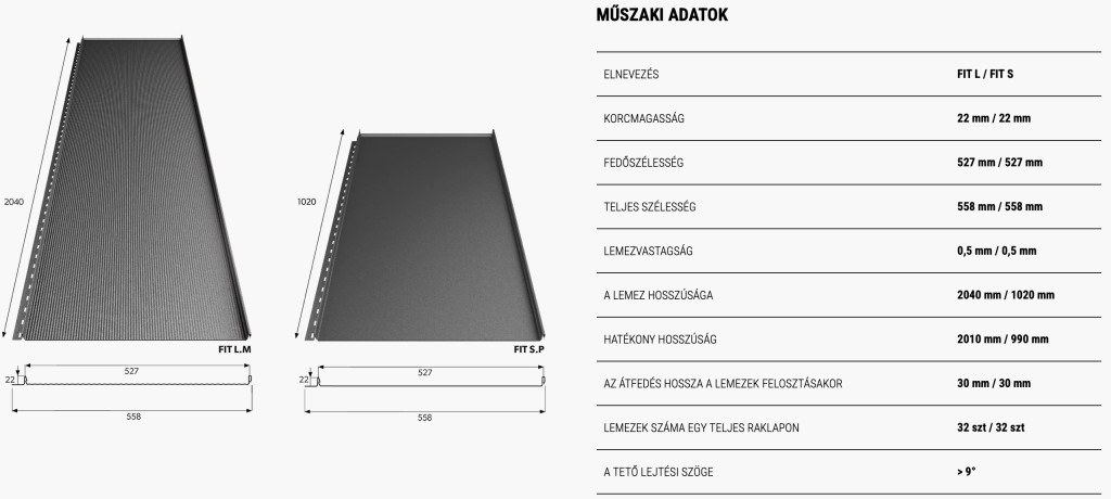 Lambda FIT "S" moduláris előkorcolt tetőlemez, UTK 24 matt (antracit szürke) 0,5mm vastag Hosszúság: 1.020 mm