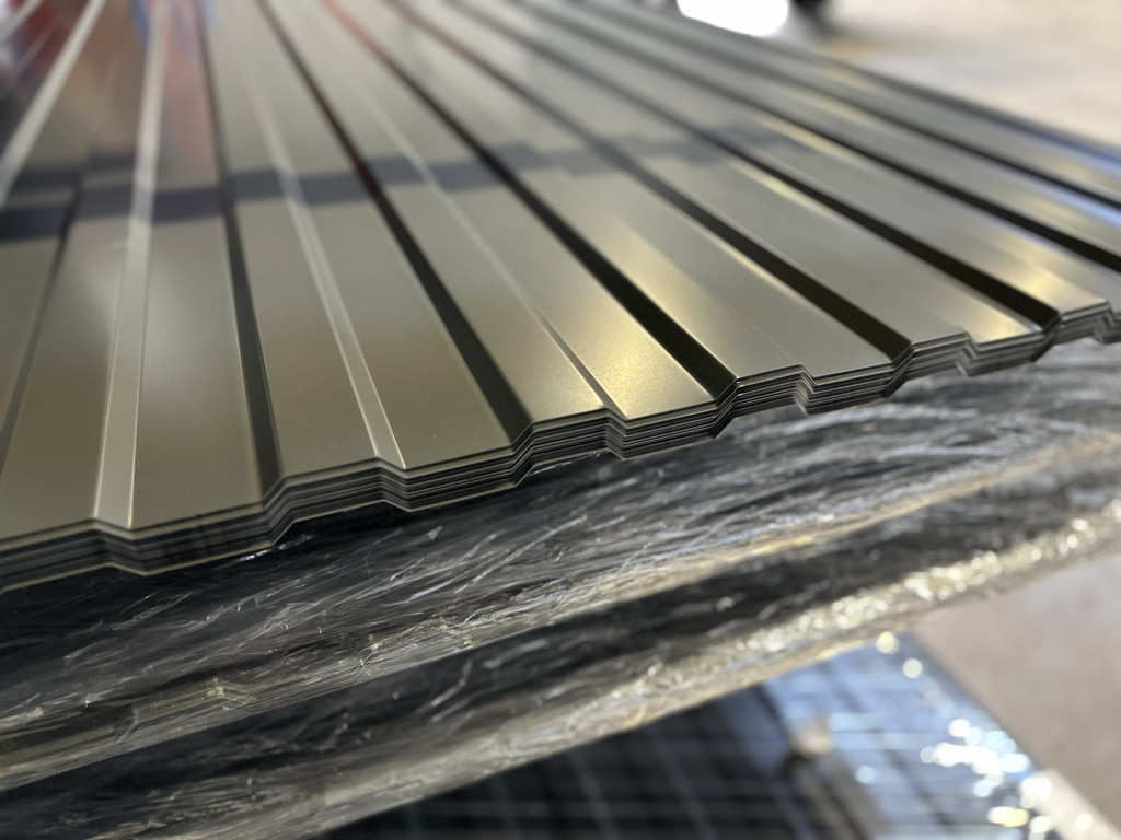 a T10-es trapézlemez 0,33mm vastag alapanyagból készült RAL 7016 antracit szürke színben fix 2 méter és 3 méteres hosszúságban.