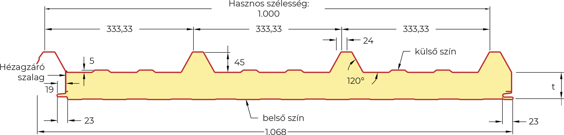 A profil speciális, rugalmas zártcellás anyagból készül, amely tökéletesen illeszkedik a szendvicspanelek hullámprofiljához, így kiváló lég- és vízzárást biztosít.