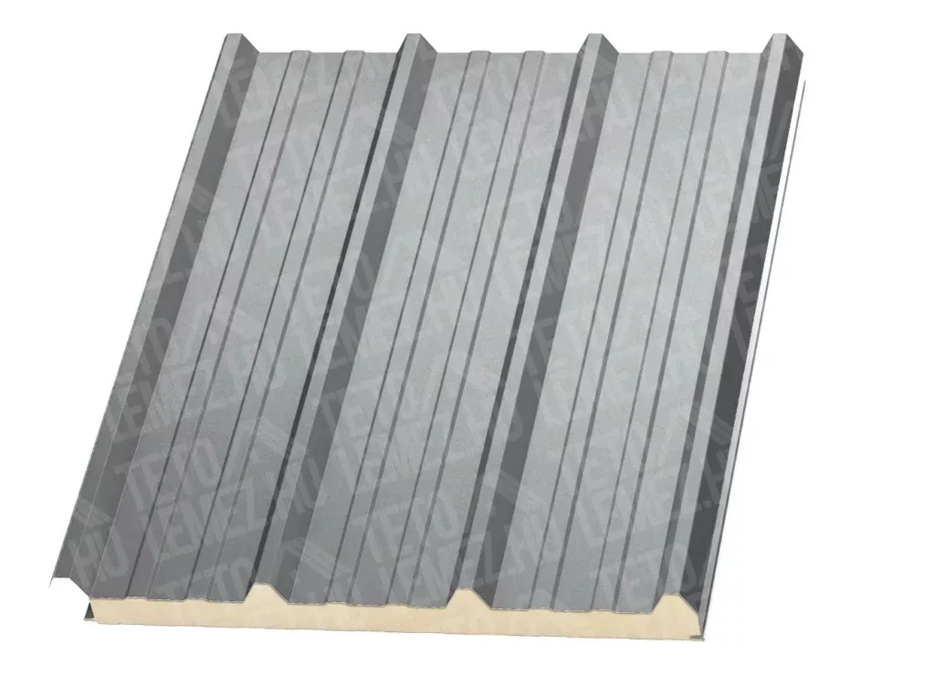 12 cm Tető szendvicspanel, kőzetgyapot töltéssel, RAL 9006 (ezüstmetál)