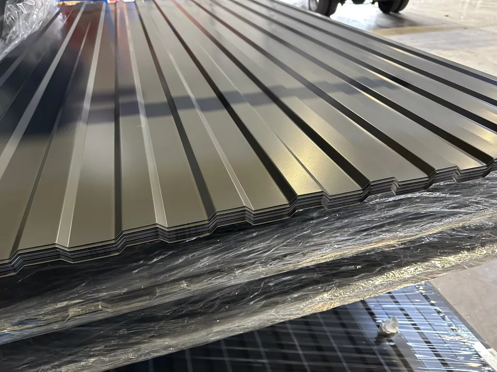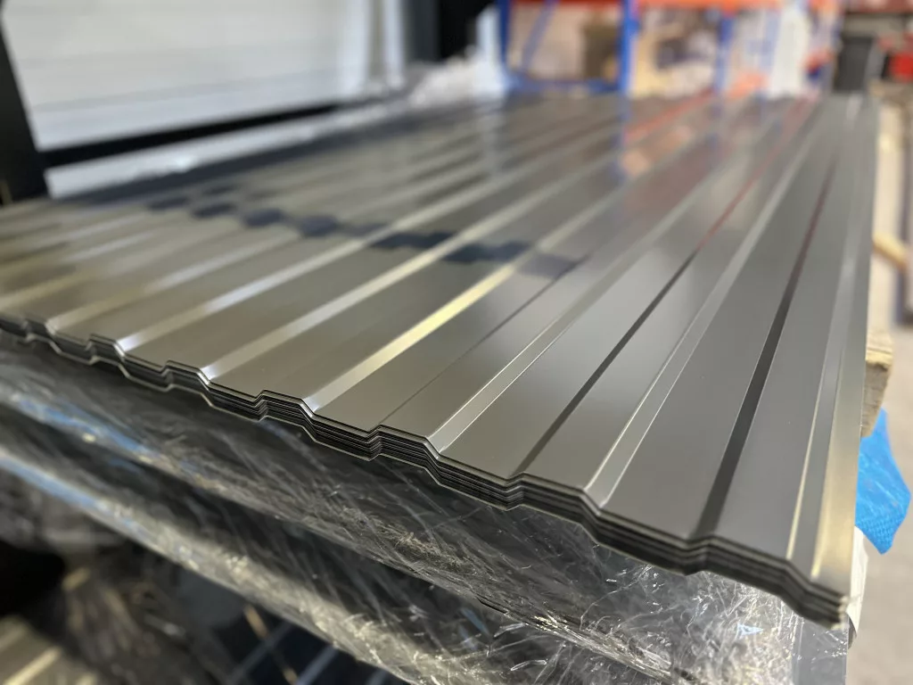 a T10-es trapézlemez 0,33mm vastag alapanyagból készült RAL 7016 antracit szürke színben fix 2 méter és 3 méteres hosszúságban.