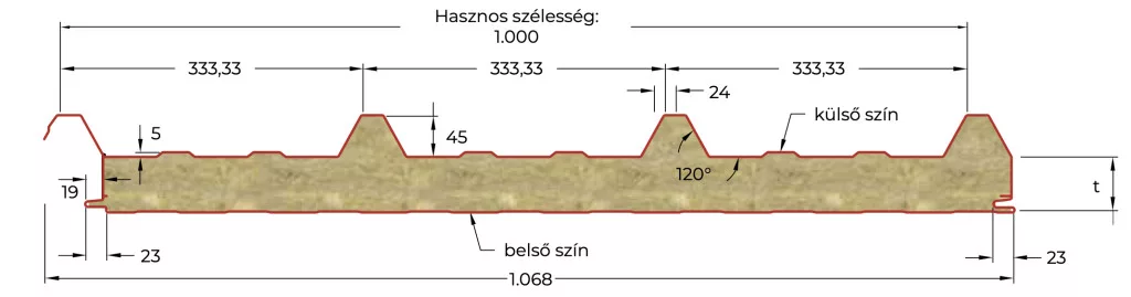 15 cm Tető szendvicspanel, kőzetgyapot töltéssel, RAL 6011 (világos zöld)